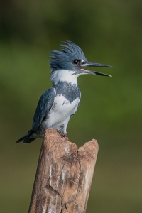 Descripción Ave de tamaño mediano, fácilmente reconocible por su plumaje azul grisáceo, su pecho blanco y su distintiva cresta erizada. Posee un pico largo, recto y robusto, ideal para capturar peces. Suele observarse posada en ramas o troncos cercanos al agua, desde donde vigila antes de lanzarse en picada para atrapar a su presa. Es solitaria y territorial, con un vuelo rápido y un llamado fuerte y agudo.