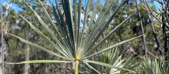 Descripción de la planta: Es una palmera rara y delgada endémica de la isla La Española (República Dominicana y Haití), caracterizada por sus hojas pequeñas, envés color gris y textura dura. Alcanza hasta los 3 a 15 metros de altura, posee un tronco esbelto de 5 a 8 cm de diámetro cubierto de fibras leñosas y es originaria de las zonas costeras áridas en la parte sur de la República Dominicana.