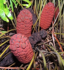 Como otras cícadas, Zamia pumila es dioico, con pies masculinos y femeninos. Los conos macho son cilíndricos, alcanzan 3-15 cm de largo; y generalmente agrupados. Los femeninos son elongados-ovoides, y llegan a 6-15 cm × 4-6 cm.